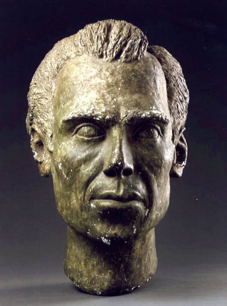 Moody exhibited his portrait of Logue in the 1959 Annual Portrait Sculptors exhibition. By this time, he was working confidently in concrete during what has been described as his “concrete period,” which lasted around twelve years.